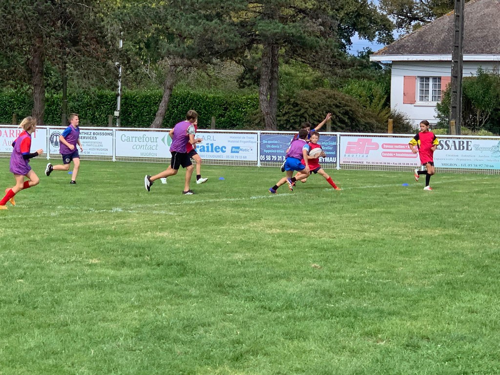 Après midi sport partagé en rugby à Mugron avec des élèves en situation de handicap. Un super état d’esprit au rendez-vous pour un bon moment partagé et des matchs gagnés.